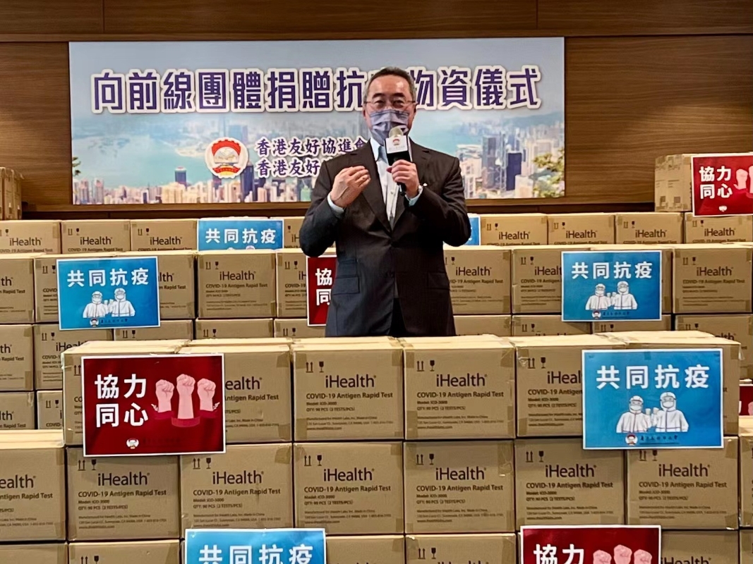 香港新聞網3月2日電全國政協常委、香港友好協進會會長唐英年3月2日出席香港友好協進會抗疫物資捐贈安排時表示,感謝中央政府提供防疫物資及派出防疫團隊,支援香港的防疫抗疫工作。香港特區政府要切實負起主體責任,盡快穩控疫情,而各界社團及組織都會動員一切可動員的力量和資源全力支持。香港友好協進會一直採購物資及接收捐助,今日把逾15萬份快速檢測包,派發給15個前線及基層團體組織,包括警察部隊。