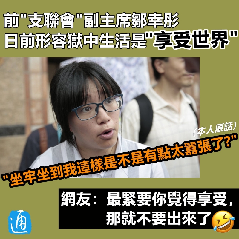 “坐牢坐到我這樣是不是太囂張了?” 亂港分子鄒幸彤自稱享受獄中生活分享到: