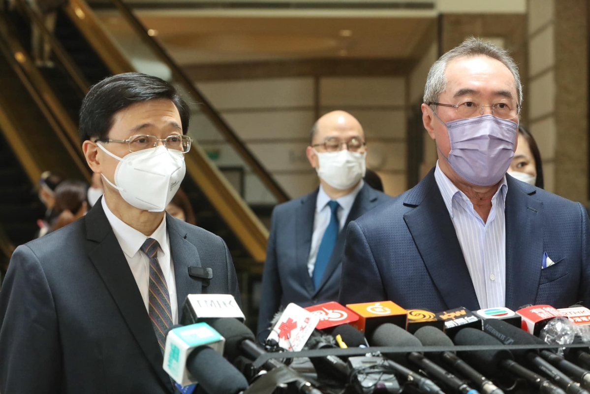 香港新聞網4月11日電 香港特區政府前政務司司長李家超11日展開拜訪活動,在拜訪香港友好協進會後,他與全國政協常委、香港友好協進會會長唐英年見記者。李家超說,談的內容廣泛,除了解釋施政方向外,還討論了世界形勢和融入國家發展大局等問題,形容很有啟發性。