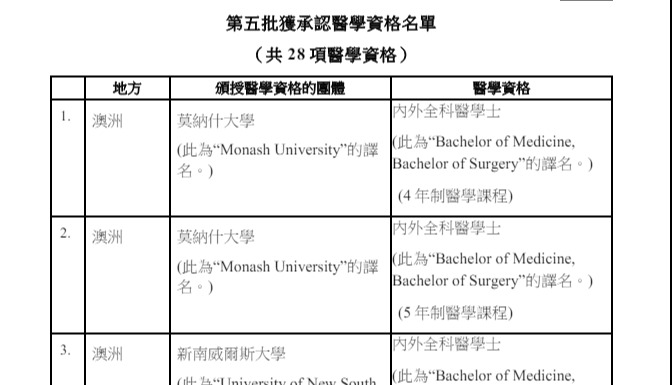 香港公布首批非本地培訓醫生認可醫學資格名單,議員對欠內地院校感失望分享到: