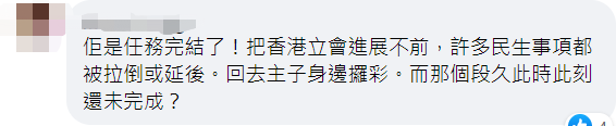 網友評論 “讓香港立法會進展不前,許多民生事項都被拉倒或是延後,(郭榮鏗)回到主子身邊討賞……”有網友則聯想起郭榮鏗在主持香港立法會2019/20年度內務委員會正副主席選舉時濫用權力,令內委會停擺逾7個月一事,認為“郭榮鏗是任務完結(後前往美國)”!