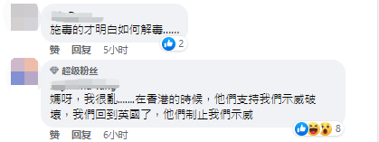 網友評論 一些網友則聯想到曾在香港示威,如今又倉皇竄逃英國的“黃絲”“手足”…… 有網友諷刺“黃絲”如今心中一定“很亂”,更替他們說出“心裡話”:“在香港的時候,他們(指美西方)支持我們示威破壞,我們回到英國了,他們制止我們示威……” “手足,有皇家飯吃了!”還有網友揶揄道,動輒便走上街頭暴力示威的香港“黃絲”,若是在英國街頭故伎重演,可謂“自投羅網”,恐怕“既要坐監亦要破產”。