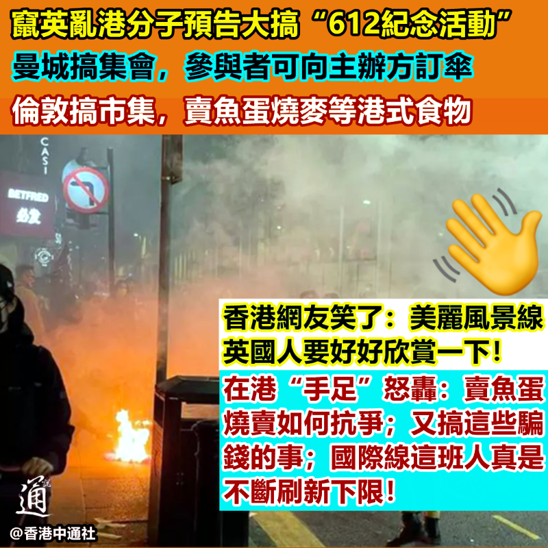 香港新聞網5月27日電 竄英的亂港分子欲在英國大搞所謂“612紀念活動”,結果被自家“手足”拆穿,又想借機斂財! 香港“修例風波”早已平息,唯獨一群亂港分子還惦記著2019年6月12日衝擊立法會的日子。他們無視當日暴行給全港市民造成的創痛,不時地大搞所謂“紀念活動”,妄圖美化暴力。 然而,香港由亂轉治後,這些反中亂港者在港已難有機會,遂將目光瞄準了海外。 近日,有竄逃英國的亂港分子在網絡發布帖文,宣稱擬於6月12日在英國大搞所謂“周年活動”。據帖文顯示,他們當日計劃在曼城的一個廣場集會,又呼籲參與者穿黑衫,叫囂“黑衣為記,黃傘為盟......讓傘海重現”等。