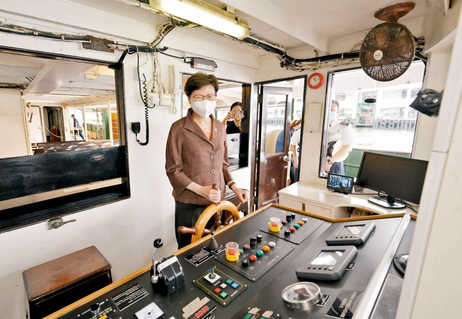 香港新聞網6月21日電 行政長官林鄭月娥昨日與立法會議員易志明以及天星小輪管理層一同乘搭小輪由中環往尖沙咀,並於開船前獲安排到駕駛艙參觀,了解這個在港具有逾百年歷史的公共交通工具的最新發展。林鄭月娥在社交媒體上表示,對於天星小輪多年來堅持提供票價相宜、往來維港兩岸的渡輪服務,同時敢於在營運方面應用綠色創新運輸技術、推動香港集體運輸系統可持續發展,感到十分鼓舞。