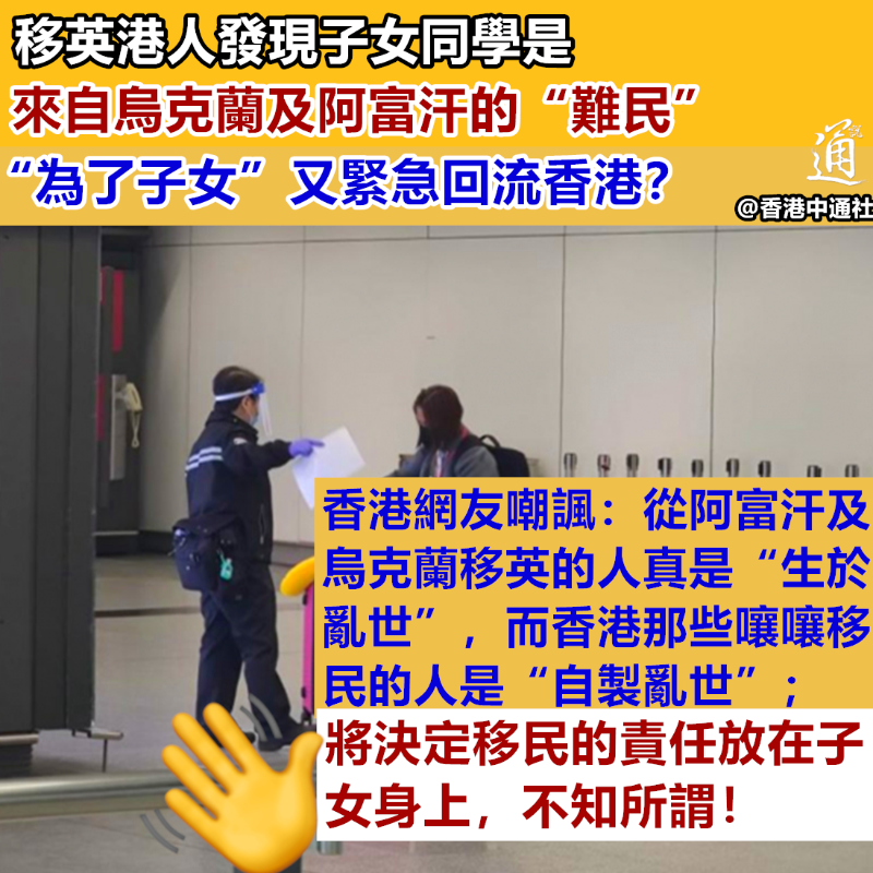 湯文亮還在帖文中爆料,朋友的子女同意回流亦是因為經常被其他同學詢問“香港這麼好,為何要來英國”的話題。這些來自烏克蘭、阿富汗的同學均對移英港生強調,若他們生活的地方像香港一般,一定不會遠赴英國。 或許是一語點醒夢中人!該港人及其子女隨後下決心回流香港。 “老實說,現在是回流的好時機。”見慣身邊人移英又回流的湯文亮對此總結道,香港中小學仍有學位,學校也非常歡迎回流的人,指離英返港是值得考慮的決定。 英國自脫歐後流失大批勞動力。為此,英政府將目光瞄準香港,在近年推出一系列表面上對港人“優惠”的移民政策,妄圖吸引港人帶錢移英。 英國政府6月公布的“非英國學生入讀英國學校”數據顯示,2021年9月1日到2022年5月27日期間,共收到8500宗香港中小學學生的入學申請,包括5800宗小學學位,以及2700宗中學學位申請,當中約8000宗申請獲得批准。 英國報告亦提及,來自烏克蘭及阿富汗學生的申請,分別有11400宗及5500宗。 可見,港人移英後,其子女確實有機會與來自烏克蘭及阿富汗的“難民”成為同學。 對此,有香港網友在網絡上感嘆,從阿富汗及烏克蘭移英的人真是“生於亂世”,而香港那些吃飽了撐得,嚷嚷要移民的人則是“自製亂世”,又嘲諷這些港人“走了就不要回來,最憎恨移民了還不斷唱衰香港。”