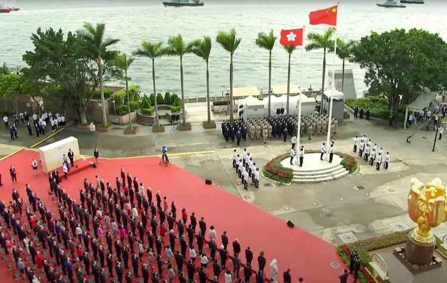 香港中通社7月1日電(記者 李明珠) 香港特區政府7月1日早上在灣仔金紫荊廣場隆重舉行升旗儀式,慶祝香港回歸祖國25周年。