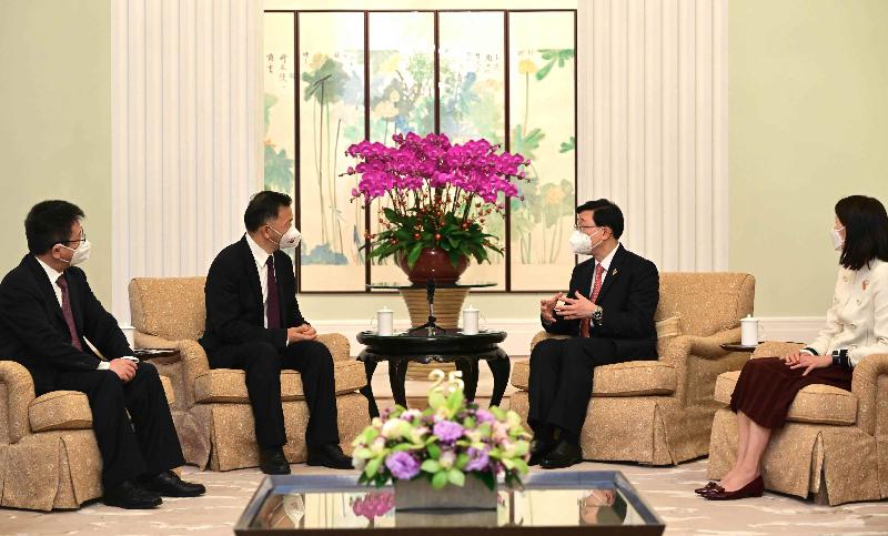 香港新聞網7月1日電 行政長官李家超今日(七月一日)在禮賓府與中宣部副部長、中央廣播電視總台台長兼總編輯慎海雄會面。