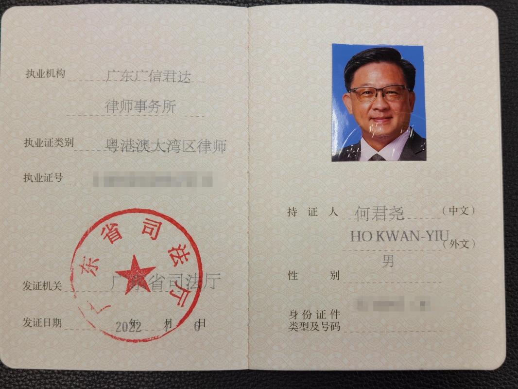 香港新聞網7月7日電 6日下午,廣東省司法廳為4名港澳律師發出粵港澳大灣區律師執業證書。香港律師何君堯和3名澳門律師,成為內地首批獲准在粵港澳大灣區內地9市執業的粵港澳大灣區律師。