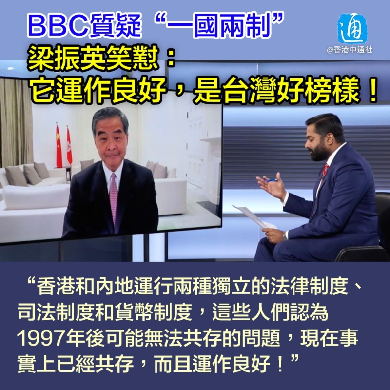 主持人隨後又引用批評人士的話,聲稱香港的“一國兩制”沒有被很好地運行,質疑香港失去言論自由及新聞自由。 對此,梁振英反駁說,和所有其他社會一樣,自由有一定的限制,“這就是為什麼英國頒布了自己的國家安全法。”強調言論自由只有在“法律界限以內”才能被接受,這些“界限”會由香港獨立的司法系統、香港的法庭決定。 “‘一國兩制’一直運行得很好,它背後有160條條文的基本法對它進行詳細闡釋。”梁振英提到,批評的人應該明確指出基本法哪一條沒有運作,而不是籠統地進行指控。 其後,主持人還對香港的教育制度改革說三道四,引用批評人士的話稱,香港教育改革試圖改變現有敘事,改寫教科書。 “香港引入國民教育,作為公民教育的延伸。”梁振英以正視聽道,“這是所有國家都會做的事情。”並反問BBC,教育香港學生身為中國公民,應該愛國,何錯之有? 至於英媒好奇“一國兩制”在台灣能否行之有效的問題,梁振英則以香港為例稱,“香港和內地運行兩種獨立的法律制度、司法制度和貨幣制度,這些人們認為1997年後可能無法共存的問題,現在事實上已經共存,而且運作良好。” 他認為,對台灣來說,香港 “一國兩制”模式是個好榜樣,台灣應該關注“一國兩制”原則在香港實行得有多成功。 【編輯:张琦】