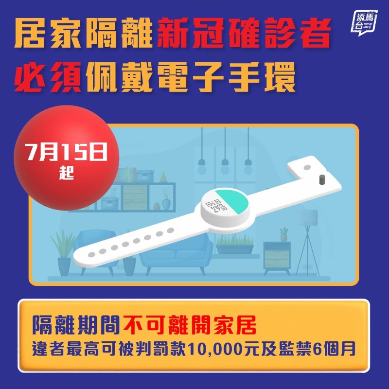 香港新聞網7月15日電 近期,香港第五波疫情有反彈跡象。香港特區政府優化隔離措施,今日(15日)起,居家隔離人士須戴上電子手環,確保他們不會離開居家範圍。 政府強調,今起會向呈報個案或透過網上平台申報的個案,派發抗疫物資包和電子手環。不遵從隔離令的人士屬違法,最高可被判處罰款1萬港元️及監禁6個月。