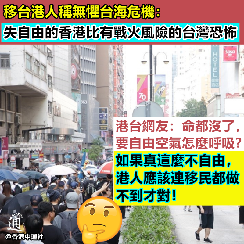 講個笑話!移台港人:“沒自由”的香港比有戰火風險的台灣恐怖分享到: