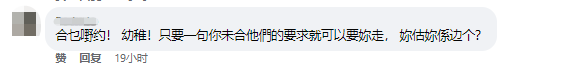 網友評論 對於YouTuber控訴台當局沒有“合約精神”,有網友直言其“幼稚”,跟詐騙集團談“合約”—— “只要一句‘你未合他們的要求’就可以要你走。” “這就要怪你們自己了!”還有網友一針見血道,“他們(台當局)講的話什麼時候兌現過?”直言對民進黨當局抱有期待的港人是“自己眼睛瞎”。