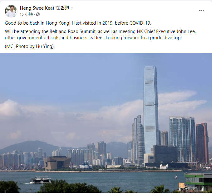 社交媒體截圖 至於本周三(31日)的第七屆“一帶一路”高峰論壇,他將會在政策對話環節中作為主講嘉賓之一。翻查資料,新加坡國務資政兼國家安全統籌部長張志賢,曾在今年5月底訪港,與當時的候任特首李家超會面。 【編輯:李冉】