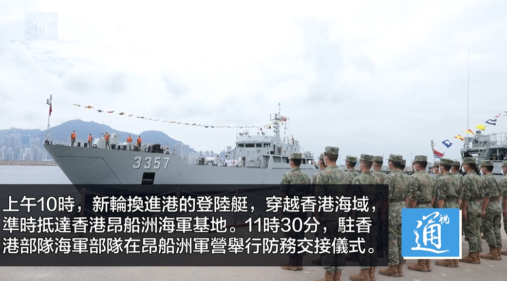 當日凌晨零時整,參加輪換的駐港陸軍主力部隊軍容嚴整,按照戰備物資標準化佩戴要求,陸續通過深圳皇崗和香港落馬洲口岸,抵達新田軍營進行防務交接儀式。儀式結束後,輪換出港的陸軍部隊返回內地駐防。 當日輪換的駐軍建制單位除了陸軍部隊,還有空軍直升機大隊和海軍艦艇。 上午9時,參加輪換的空軍部隊從廣州駐地出發,抵達石崗軍營,接替輪換出港的直升機大隊履行防務。上午10時,新輪換進港的登陸艇穿過香港海域,抵達昂船洲海軍基地,駐港海軍部隊在昂船洲軍營進行防務交接。 交接任務完成後,輪換出港的直升機編隊和海軍艦艇在戰友們歡送下離開香港。(完) 【編輯:陈卓仪】