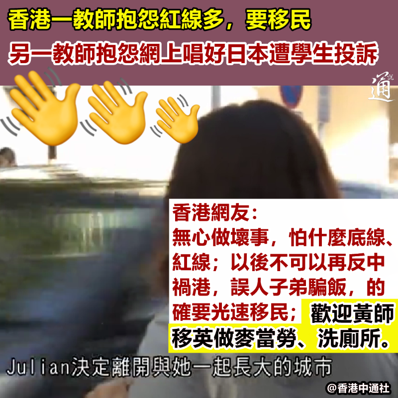 而有逾20年教齡的蕭姓教師原本教授中文、中史及通識科,今年9月他轉換跑道兼職教話劇,以及幫人補習,聲稱雖然收入少了一半,但換來些“自由”空間。 “以中史科為例,課程變動已經很大,還要加入國安元素......”蕭姓教師抱怨,這讓前線執行者要應付太多事,“很辛苦”,又不滿地指香港言論自由收窄,老師面臨被學生監督的壓力,“例如我在社交媒體說日本文化如何好、日本人很乾淨,有學生不滿意,甚至他會向學校反映......” 香港“修例風波”期間,一些涉世未深的學生被“黃師”洗腦後,衝到反中亂港的示威前線,結果付出慘痛代價。社會隨後重視香港的教育問題,改革通識科、大力推行國安教育…… 未料香港“撥亂反正”的一大步,竟遭兩位教師如此“污衊、唱衰”。有關言論傳開後,不少明理的香港網友紛紛於討論區發帖開懟! “無心做壞事,怕什麼底線、紅線。”有香港網友直言:“黃師整天洗腦學生,離職是好事。” 有網友則嘲諷欲移民的教師:“以後不可以再反中禍港,誤人子弟騙飯,的確要光速移民、逃離偷生,記得離開時, 把香港身份證及特區護照也註銷, 不要靜悄悄回流騙資源和福利就是。” 至於轉換跑道的蕭姓教師埋怨因“唱好日本”遭學生投訴,有網友就發出靈魂質問:“別再想著單向灌輸,學生亦應該有渠道去質疑,這不是教育理念嗎?” “記得有個香港教師教導學生說 :英國人想幫中國人戒鴉片,所以就發生了鴉片戰爭。”還有網友在評論區強調“黃師”應捫心自問,都教過學生什麼。 “有書不教,去其他國家洗碗?”亦有不少網友對移民教師的未來感到擔憂,揶揄稱“歡迎黃師移英做麥當勞、洗厠所。”
