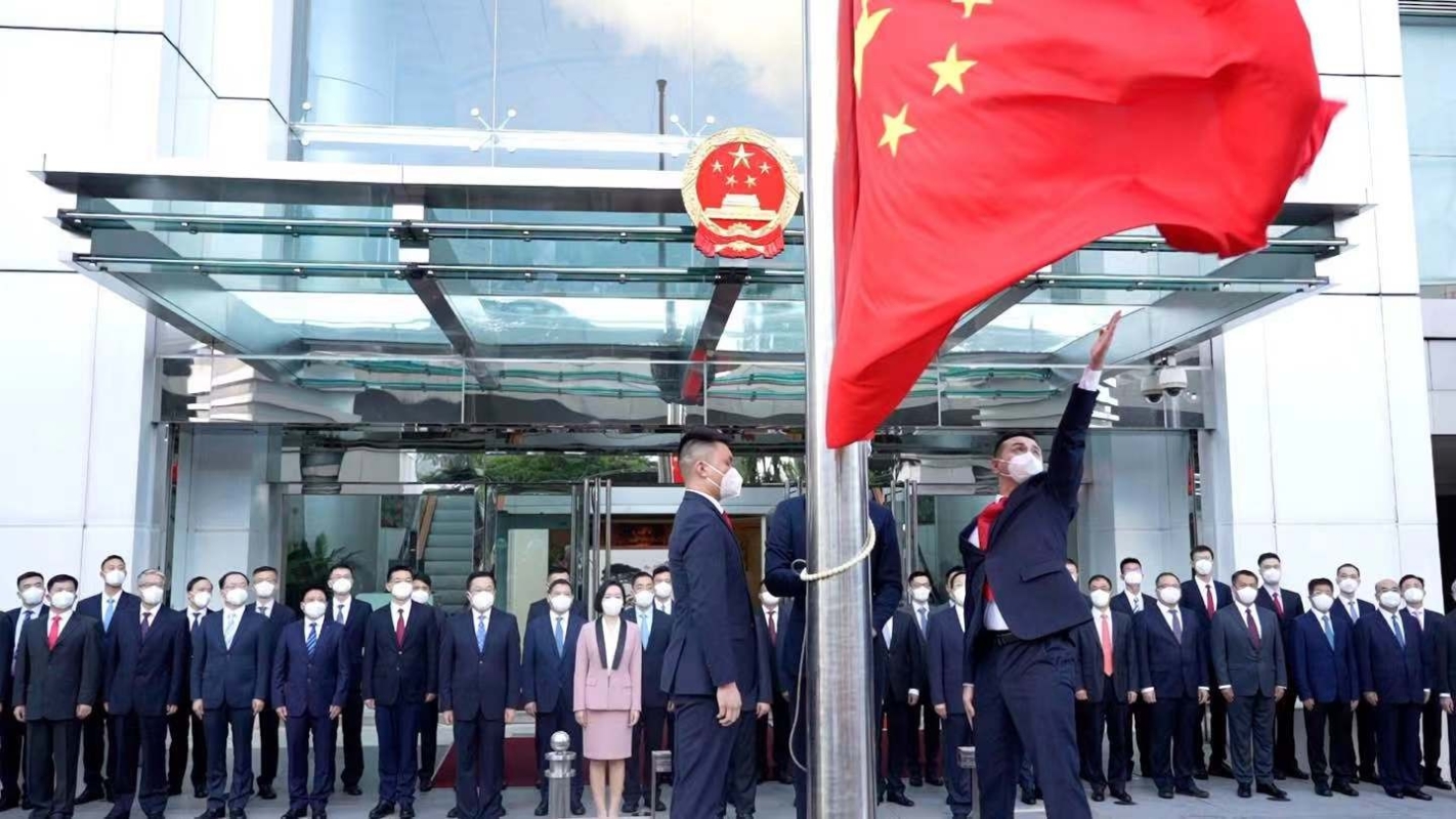 香港中聯辦舉行升旗儀式 慶祝中華人民共和國成立73周年