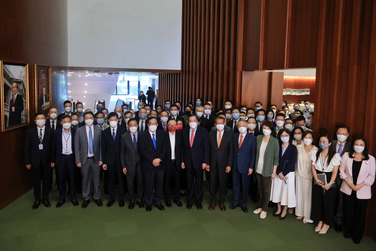 香港新聞網10月5日電 每月一次的前廳交流會上月因新冠疫情而延期,本月5日上午,香港行政立法機構舉行第三次前廳交流會,由財政司司長陳茂波率領6個政策局官員、金管局和證監會總裁、副總裁出席,就土地和發展、房屋和交通運輸物流、金融服務、創新科技以及商務經濟等交換意見,會議持續逾一個小時,約70位議員出席。