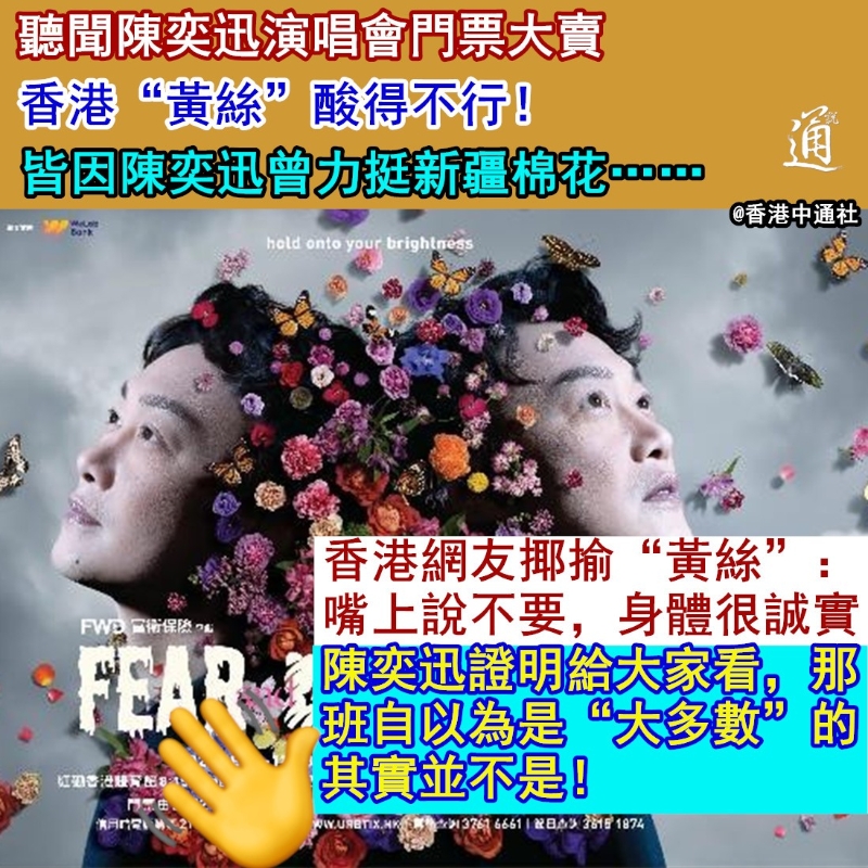 此前,部分國際品牌因所謂“人權問題”,揚言拒用新疆棉花,此舉引發國人不滿。不少內地藝人紛紛發表聲明,與涉事品牌解約。香港歌手陳奕迅亦在社交媒體發聲明稱,終止與阿迪達斯的一切合作。聲明強調,“我司與我司藝人陳奕迅先生堅決抵制任何污名化中國的行為......” 從2011年開始,陳奕迅就代言了阿迪達斯,這一聲明也意味著他結束了與阿迪達斯長達10年的合作關係。 陳奕迅的強勢表態獲得一眾網友力撐。然而消息傳回香港後,竟引發部分“反中亂港” “黃絲” 的不滿。他們叫囂要抵制陳奕迅、罷看其演唱會等。 豈料,一年多後,陳奕迅18場香港演唱會的門票剛發售,就致使售票網站大塞車……可謂狠狠打臉了四處煽風點火的“黃絲”! “香港人真是這麼沒骨氣?他是新疆迅。”聽聞陳奕迅演唱會大賣後,部分“賊心不死”的“黃絲”仍拒絕相信,在有關消息的評論區自欺欺人地寫道,“或者進去(看演唱會)的可能內地人占大多數,又或者請人製造假象呢?” “香港現在這麼多新移民,不出奇!”也有“黃絲”自我安慰地說。 酸言酸語於網絡流傳後,一眾眼明心亮的香港網友紛紛出聲回懟:“有人好酸啊”,“(黃絲)口裡說不,身體卻很誠實”。 對於有“黃絲”質疑陳奕迅演唱會“一票難求”是“造假”一事,有網友就在評論區分享自身經歷稱,“排了6個小時都進不了網站。”從側面證實陳奕迅演唱會門票確實銷售火爆。