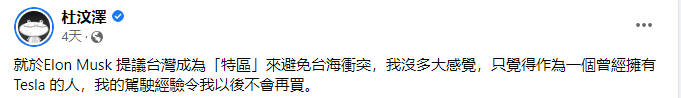 馬斯克涉台言論,杜汶澤坐不住了?分享到: