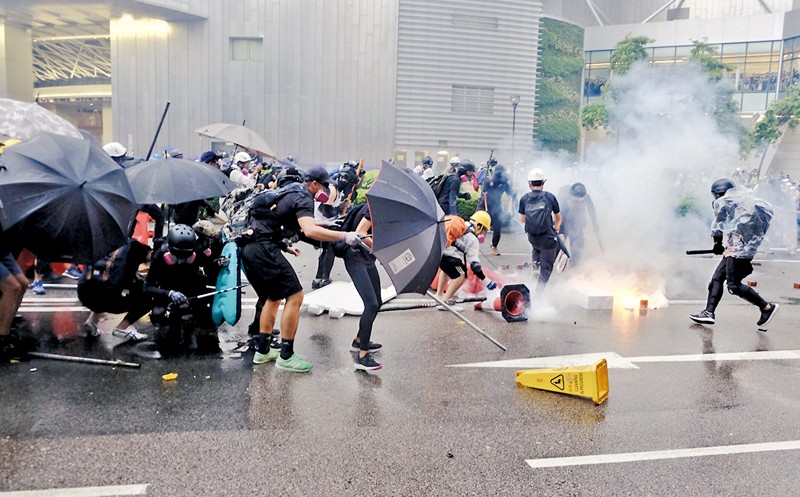 香港新聞網10月20日電 2019年8月在荃灣,大批黑衣男子參與非法集會、堵路、縱火及大肆破壞,3名男子被控非法集結及襲警等罪,經審訊後全被裁定罪成。昨(19)日在西九龍裁判法院分別被判囚11個月至11個月4星期。裁判官李志豪指出,雖無證據顯示3人有參與極端暴力行為,但案件正值社會事件“此起彼落”,參與罪責大同小異,此外3人是經審訊後被定罪,無悔意可言。