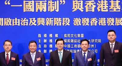 香港中通社10月31日電 由紫荊雜志社與天大研究院主辦的第七屆“一國兩制”與基本法研討會31日在香港舉行,主題為“貫徹黨的二十大精神,堅持和完善‘一國兩制’”,約200名來自政、商、學界嘉賓參加。