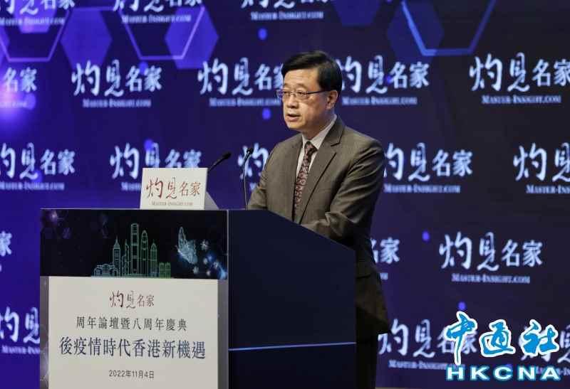 11月4日,李家超出席媒體平台灼見名家的周年論壇。香港中通社圖片 當天,李家超出席媒體平台灼見名家的周年論壇。他致辭時表示,國際金融領袖投資峰會逾200人參加,盛況空前。峰會讓海外金融領袖更深入了解香港的發展藍圖、優勢及潛力,以及可以為海外企業提供機遇。 香港一連3天舉行七人欖球賽事開鑼;李家超說,有信心可以再成功舉辦另一個精彩的國際盛事。不同盛事接踵而來,加上社交距離措施有序放寬,香港將會不斷活起來、動起來。 李家超認為,香港在後疫情時期機遇無限,因為香港優勢多不勝數,新冠疫情無法改變香港基因。他說,堅信國家作為香港最堅強的後盾,加上有“一國兩制”作為長期繁榮穩定的最佳制度保障,香港定能砥勵奮發、勇毅前行,前路未必每一步完全平坦,但前景肯定光明遼闊。 【編輯:馬華】