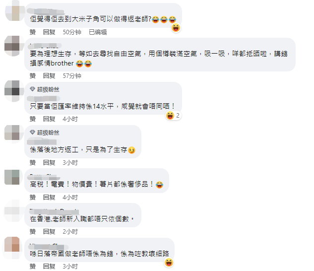 (移英“手足”評論) 或是同樣對全職教師薪資感到不滿,有移英“手足”坦言,自己已經轉做supply(代課教師)了。 不過,也有移英“手足”在評論區自我安慰,稱英國教師的起薪和頂薪“已經好過普通護士”。 或許是怕被來自故土的人笑話,還有移英人士強行挽尊——“在外國做老師真的不是為錢”。