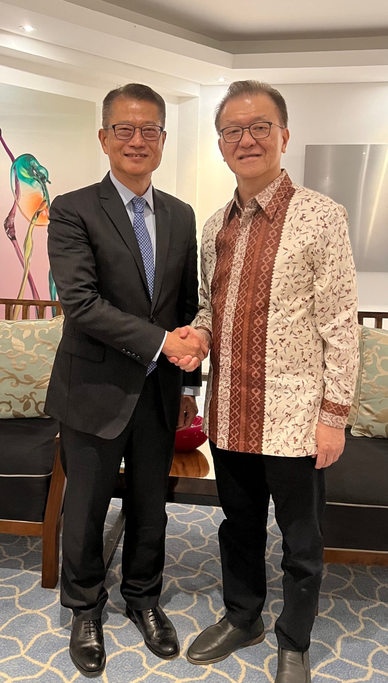 政府新聞網 今年峰會以“共同復蘇、強勁復蘇”為主題,討論全球經濟、能源、糧食安全、公共衞生等議題。 當天出席峰會後,陳茂波與Sinar Mas主席及行政總裁Franky Widjaja會面。Sinar Mas是印尼全國最大工商集團之一,業務涉及房地產、金融服務、電訊、能源、基建等。陳茂波向他介紹香港卓越的金融和專業服務,並鼓勵對方利用香港作為平台連繫全球的投資者和資金,並探討各領域的合作機會。