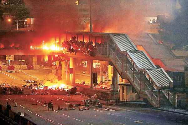 資料圖:2019年11月香港理大暴動當中,暴徒投擲大型燃燒彈。 圖自《文匯報》 6名被告依次為23歲非緊急救護運送服務員陳俊邦、19歲女學生陳頌欣、22歲餐廳經理郭添明、18歲中五學生羅健洋、23歲大學生李日朗及23歲建築工人袁太林。同被控約於2019年11月17日至18日期間,在港理大與科學館道一帶,連同其他人參與暴動。 法官引述控方案情指,2019年11月17日約晚上7時,大批身穿黑色衣物、戴上頭盔、眼罩等裝備的人在暢運道天橋集結。他們持雨傘、木板和雜物築起路障與警方對峙,又使用自製大型投石器和彈弓,向警方銳武裝甲車投擲汽油彈,導致裝甲車著火焚燒。示威者持續佔據該地區行車線至翌日早5時左右。差不多同一時間,示威者在理大校園內和正門樓梯間破壞內裡設施,現場曾發生多次爆炸。約上午8時,數百人在廣場聚集,一同前往正門,他們趁大火而有大量濃煙之際成功逃離,並前往科學館道。 法官續指,新聞和社交媒體有廣泛報道理大情況,各被告必然知道有衝突發生。有被告自辯指有必要進入校園,法官拒絕接納說法,認為他們不是可靠的證人。至於他們個別的行為,被告李日朗前往科學館時手持疑似汽油彈的玻璃瓶,而袁太林被捕時衣服有藍色水漬,唯一不可抗拒推論是他曾出現在對峙現場而染上藍色催淚水。法官因此裁定,全部被告希望藉現身壯大聲威,以鼓吹他們持續作非法行為,故暴動罪成。(完) 【編輯:李雪萍】