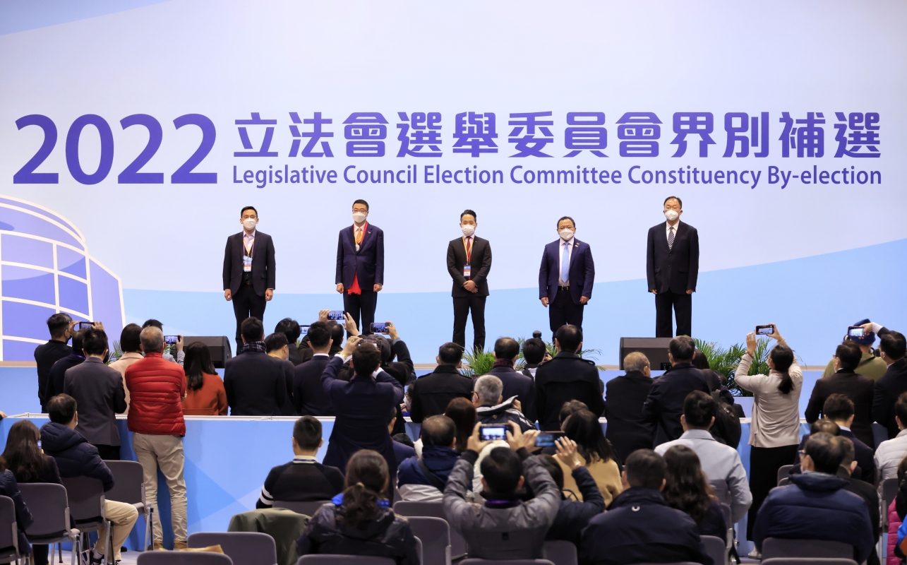 香港新聞網12月18日電 香港立法會選舉委員會(選委會)界別補選18日舉行,六名候選人角逐四個議席。最終,黃錦輝、陳永光、何敬康和尚海龍在當日的補選中當選。