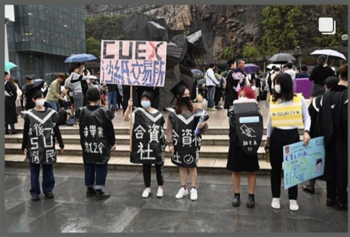 早前中大畢業禮有學生搞事(網絡圖片) 張宇人日前接受電視節目訪問時重提事件,稱自己去過幾次中大畢業禮,可謂是“慘不忍睹”。“畢業禮是一個很嚴肅的場合,大家應該要尊重(這個場合)。”他稱,在外國大學的畢業禮上,即使播放的不是自己國家的國歌,學生們也不會不尊重這個場合,“別說對國歌、國旗不尊重,其實做出任何喧嘩、搗亂的行為,不僅對自己的父母不尊重,對同學、同學父母,以及教職員等亦非常不尊重。”