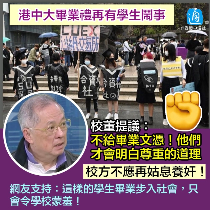 港中大畢業禮再有學生鬧事,校董提議:不給畢業文憑!分享到: