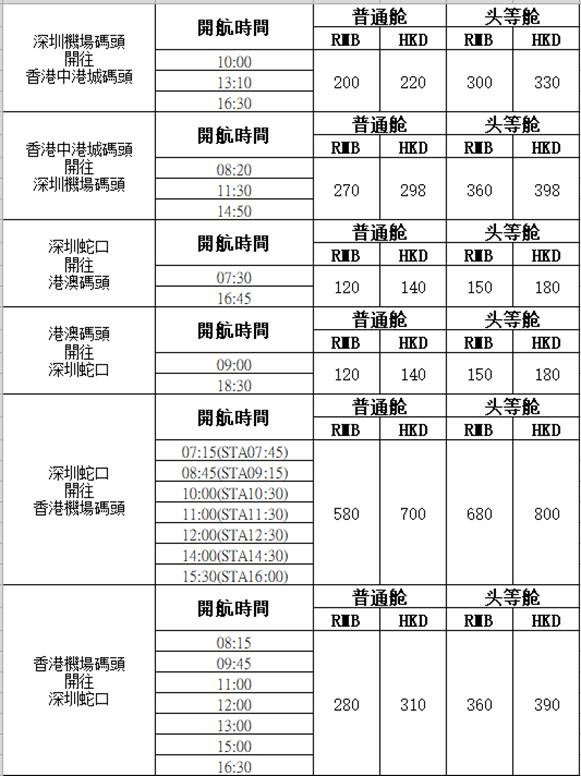 復航初期,計劃每日提供港澳碼頭往返深圳蛇口兩進兩出4個航班、中國客運碼頭往返深圳機場碼頭三進三出6個航班,並在短期內陸續恢復其他航線及加大航班密度。