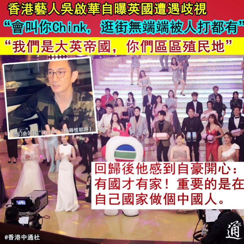 “會叫你Chink!” 香港藝人吳啟華在英國遇種族歧視,感悟有國才有家分享到: