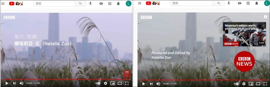 (BBC報道截圖) 此外,在多個涉華報道的視頻中,BBC亦被網友揭發使用色調昏暗的“陰間濾鏡”,有時同一視頻的中英文版本色調差異十分明顯。