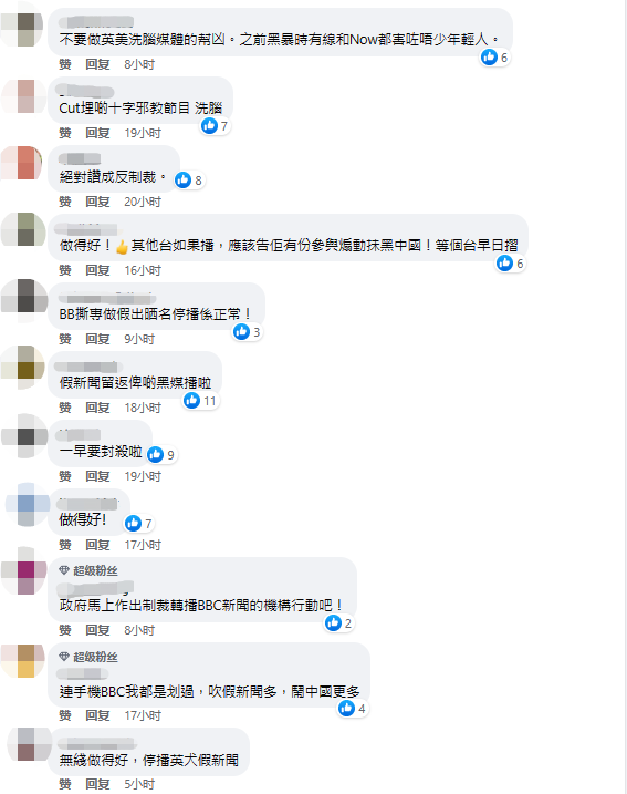 (BBC被指使用“陰間濾鏡”) 值得一提的是,BBC對香港可謂尤其“關心”,被指時常活躍在帶節奏、混淆視聽的第一線。中國外交部此前就批評,2019年香港“修例風波”期間,BBC在涉港報道中無視暴徒暴行,卻反過來指責盡心守護香港的香港警察“暴力執法”。 近年來,中方數次駁斥並敦促BBC摒棄偏見,改正錯誤,客觀、公正、全面報道中國, 無奈BBC無動於衷…… 2021年,中國國家廣電總局禁播BBC新聞頻道(BBC World News),香港電台立即跟進,不再轉播BBC世界新聞頻道及《BBC時事一周》。如今又傳出TVB將下架BBC頻道的消息,立刻引得一眾香港網友拍手稱快! 在相關新聞評論區,網友紛紛表示“做得好”。 “不要做英美洗腦媒體的幫兇!”有網友直言,一些關於“黑暴”的失實報道已經“害了不少年輕人”。