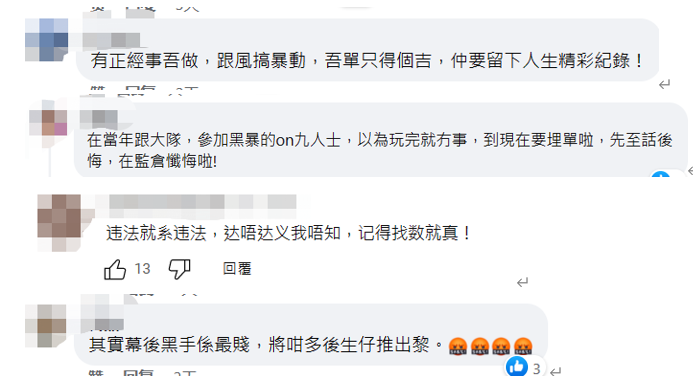 香港中通社製圖 而另一名律師代表其中一名暴徒求情時,表現得更誇張!該律師哽咽地說,相信年輕被告沒有想過會陷入牢獄之中,事件對他們的人生產生不可磨滅的影響,已經是很大的懲罰。該律師還辯稱,黑暴案件有別於“打家劫舍”等刑事案件,希望法庭給予年輕人機會。 早知今日何必當初!怕影響到自己的事業、婚姻和未來,那就不要違法犯罪,而不是犯事之後在庭上賣慘、裝可憐! 法官林偉權就反駁了辯方稱案件“不嚴重”的說法。他指事發於九龍核心地區,示威者曾投擲約250枚汽油彈,場面極為暴力,對周遭環境造成破壞,案情十分嚴重,判刑須具阻嚇性!林偉權特別指出,眾被告加入人群,讓其他暴動者恃著人多勢眾而繼續犯案也是犯下大罪,法庭有責任重判。 “違法必須付出代價!” 香港網友則紛紛留言支持法庭嚴正判決! 有網友直指,2019年這些“黃絲”無腦跟風搞暴動,以為“玩完就沒事”,現在要付出代價了,才說感到後悔,“(不如)到監獄後悔吧!” 也有網友現時想到黑暴對香港的破壞仍感心痛,質問“自己住的地方就是自己的家,自己的家都忍心去破壞的人還能做什麼呢?” 也有網友認為鼓動年輕人走上街頭的幕後黑手更惹人厭惡!
