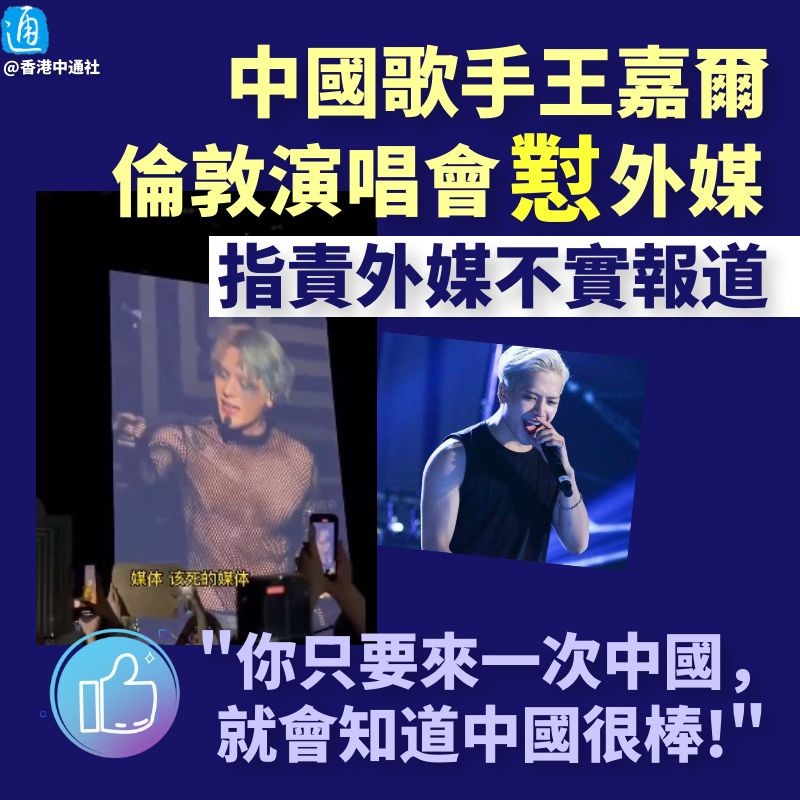 香港新聞網1月13日電 中國香港歌手王嘉爾在昨天(12日)的倫敦演唱會上懟外媒,指責外媒不實報道!王嘉爾表示,你只要來一次中國,就會知道中國很棒! 王嘉爾表示,“我們歡迎任何人來到中國,只要你來過一次,就會發現這里並不是你們想像中那樣——用自己的眼睛去丈量這是一個怎樣的地方吧。”王嘉爾說完全場沸騰,#王嘉爾倫敦演唱會懟外媒#詞條於今日(13日)衝上微博熱搜,引發網友關注。