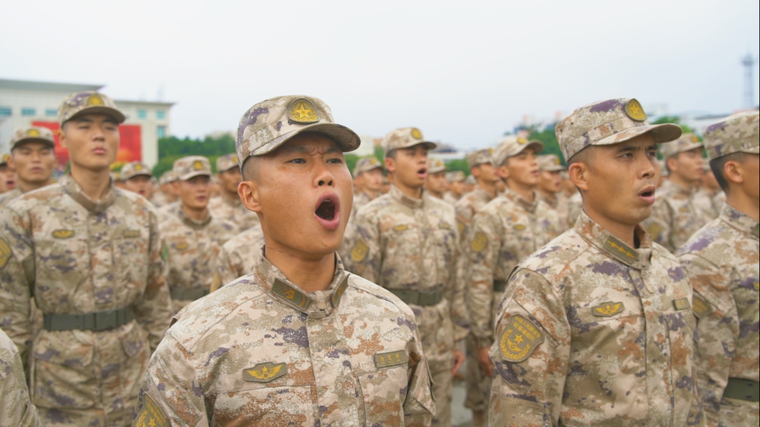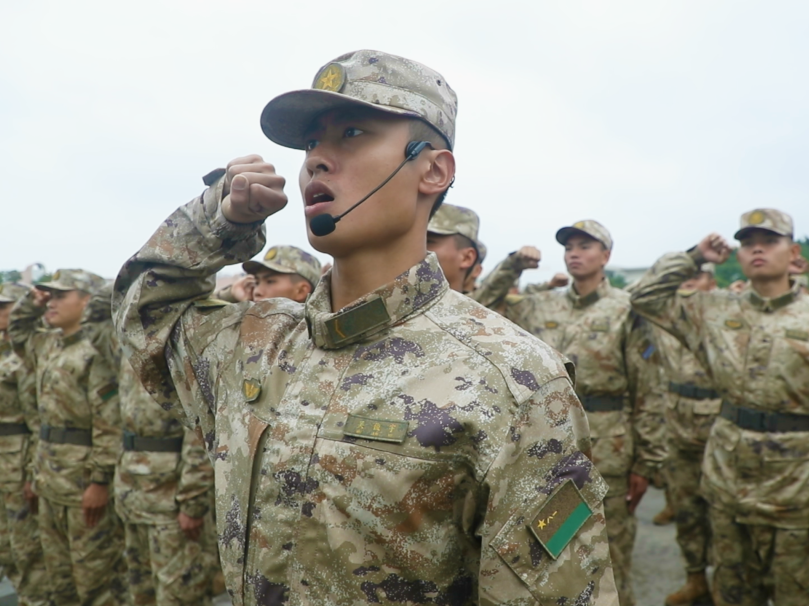 在莊嚴的八一軍旗下,新戰士們高舉右拳、鄭重宣誓:我是中國人民解放軍軍人,我宣誓,服從中國共產黨的領導,全心全意為人民服務......”錚錚誓言表達著正式成為一名軍人的光榮與自豪。