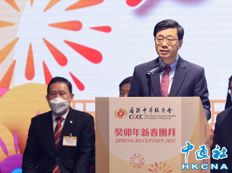 2月1日,香港中華總商會在君悅酒店舉行癸卯年春節團拜。香港特區行政長官李家超出席並致辭。圖源:香港中通社 特區行政長官李家超致辭時表示,新一年香港迎來了新篇章,通關令很多分隔兩地的家庭和親友再次團聚;也方便工商界人士更輕松處理兩地業務。香港整體經濟動力亦明顯加強,有利各行業生產力復蘇。隨著跨境人流恢復,香港與內地和國際間的合作將日益頻繁,充分展現香港作為亞洲盛事之都的角色。 他充分肯定中總上個月組織商務考察團到越南,促進香港和當地的交流、聯繫及合作;希望未來繼續為香港企業拓展更多、更廣闊的商機。特區政府團隊亦會積極到香港以外訪問,同工商界一起向外宣揚香港的營商優勢。中東地區是國家“一帶一路”倡議重要節點,本周將率團到訪,全力開拓香港和中東的發展空間。 香港中華總商會會長蔡冠深表示,通關令旅遊及相關消費行業迎來業務曙光,防疫政策改變為香港經濟注入動力;內地政策亦強調將擴大內需擺在優先位置。香港要做好投資者、營運者角色,全力把握雙循環發展動機。 他指出,中總會繼續做好“香港中總、國家中總、世界中總”的角色,與內地和全球各地建立更緊密的經貿聯繄。繼續發揮商界橋梁功能,進一步提升香港“走出去、引進來”的功效。 當日,中央駐港聯絡辦公室副主任尹宗華、外交部駐港公署特派員劉光源、香港特區政府政務司司長陳國基、律政司司長林定國等皆出席團拜活動。(完) 【編輯:馬華】