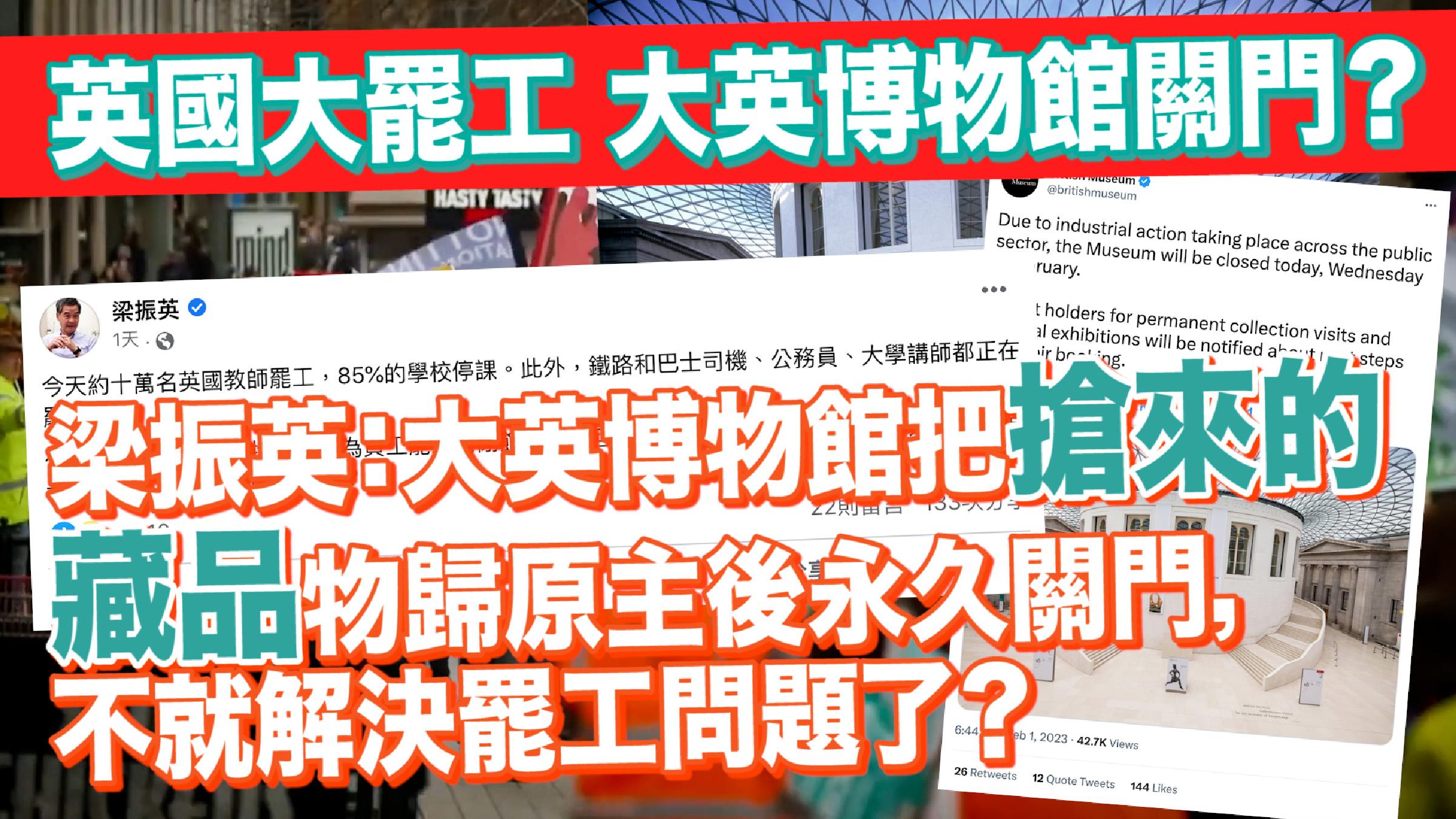 香港新聞網2月2日電 英國人罷工,要求增加工資,改善工作條件。 昨日(1日),英國出现10年來最大的联合罷工。據《CNBC》、《每日郵報》、《法新社》報導,昨日逾50萬名英國勞工展開大規模罷工行動,包括英格蘭的30萬名教師;駕駛教練、海岸防衛隊、就業及退休金事務部等約10萬名公務員;講師、保安人員等7萬名大學工作人員;以及大約10萬名火車與公車司機。 對此,香港前特首梁振英昨日在社交媒體發文稱,當日約10萬名英國教師罷工,85%的學校停課。此外,鐵路和巴士司機、公務員、大學講師都正在罷工。 “有意思的是,大英博物館也因為員工罷工而閉館。”梁振英揶揄:“把偷回來、搶回來的藏品物歸原主,大英博物館永久關門,不就解決問題了嗎?”