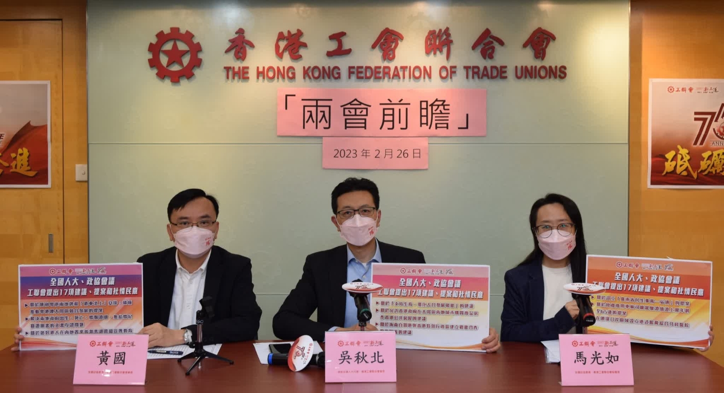 (圖源:香港工聯會臉書) 港區全國人大代表、工聯會會長吳秋北,全國政協委員、工聯會理事長黃國,全國政協委員、工聯會秘書長馬光如26日舉行記者會,建議包括全面落實“支援生育、優化人口發展戰略”,允許特區政府整體購買內地大灣區城市閒置商品房作為香港公屋,取消港澳台學生豁免修讀“思想政治教育課”,將香港納入國家人體器官共用系統,以及便利粵港兩地車牌和“港車北上”的安排等。 吳秋北表示,香港熟地稀少,興建公屋的建築成本高昂,以“簡約公屋”為例,每單位成本超過86萬,而每個單位每月管理費達到2,450元,僅這筆管理費,如果在部分大灣區城市,比如東莞、深圳龍華區、佛山等租住房屋,已能租到三房單位,最小也有700平方呎,所以,建議內地政府允許特區政府整體購買內地大灣區城市閒置商品房作為香港公屋,解決香港基層市民住房困難,推動大灣區融合。 工聯會表示,今年是國家發展極為重要的一年,隨着香港與內地恢復全面通關,更有利推進兩地高質量發展。工聯會將會堅定準確地落實“二十大”精神,結合《粵港澳大灣區發展規劃綱要》,即時反映港人關心的議題和訴求,切實發揮溝通兩地的作用。 【編輯:王瑶】