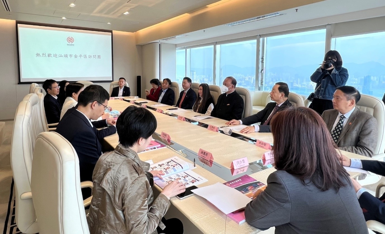 香港中國商會接待汕頭市金平區訪問團香港新聞網3月4日電 3月2日上午,香港中國商會接待汕頭市金平區區委書記陳玩雪率領的訪問團。 訪問團成員包括金平區委常委、統戰部部長許桂欽,金平區委常委、區委區政府辦公室主任黃建鴻,金平區政府副區長李佳峰,金平區委統戰部常務副部長、僑務局局長沈冬莉,金平區僑聯主席陳麗莉,工信局局長陳昂爾,發改局局長洪少慧,黨史研究室副主任謝偉傑,區委區政府辦公室文電法規股股長林夢翊,商務局一級科員陳研婷等。
