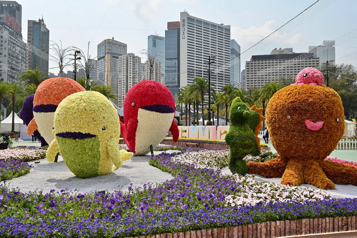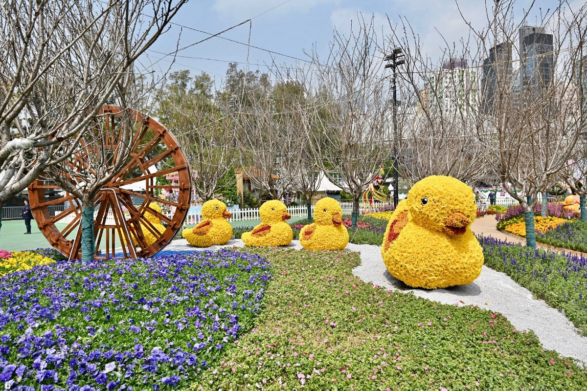 圖示花展的特色景點之一,鮮艷奪目的立體繡球花花牆和花圃,共有八朵由不同植物細心鑲嵌成的巨型繡球花,展現立體美態。 花展會場中軸線,以春、夏、秋、冬四季為主題,由興發街入口伸延至糖街入口,以繡球花和充滿季節色彩的裝置分別打造四季景致的花壇,每個花壇風格截然不同,各具特色。
