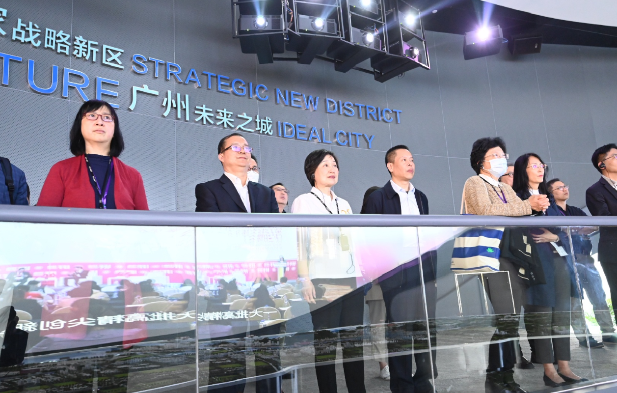 圖示蔡若蓮(左三)和教育局常任秘書長李美嫦(左一)在位於南沙的明珠灣開發展覽中心觀看有關南沙規劃發展的短片。 團員踴躍參與行程活動,彼此交流。訪問團10日將繼續考察行程。(完) 【編輯:崔靜雯】