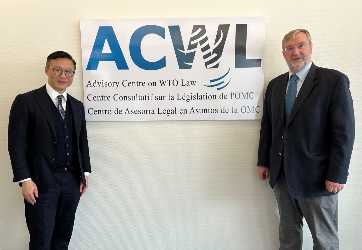 張國鈞(左)在日內瓦與世界貿易組織法律支援中心行政總裁Niall Meagher(右)會面