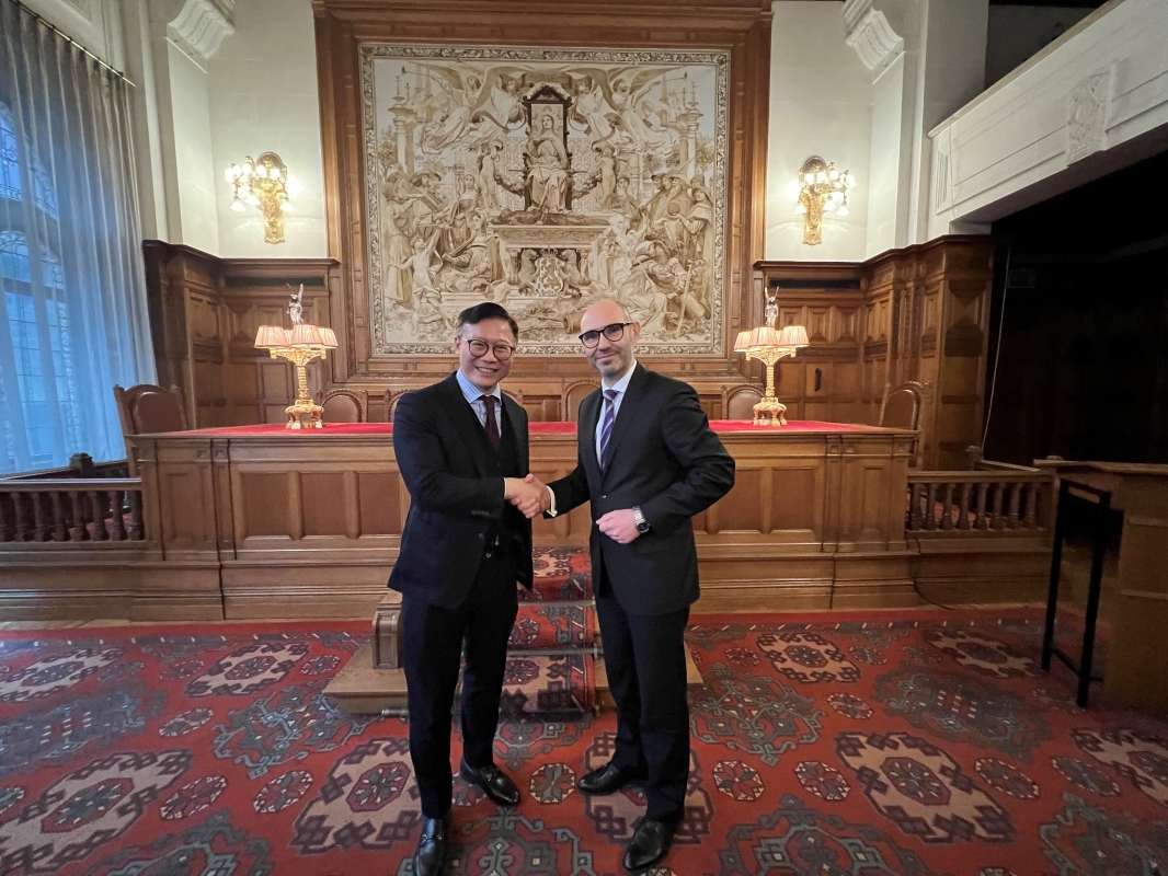 張國鈞(左一)與常設仲裁法院秘書長Marcin Czepelak博士(右一)以及法院高層人員會面。 他表示,在“一國兩制”的優勢下,香港與內地建立了既深且廣的民商事司法互助機制,在仲裁方面,內地與香港已達成三項安排,包括有關相互執行仲裁裁決的安排,以及就仲裁程序相互協助保全的安排。這些安排讓以香港作為仲裁地的仲裁程序享有獨特優勢。 張國鈞指出,“十四五”規劃、粵港澳大灣區建設、“一帶一路”倡議等國家戰略會帶給國際社會無限機遇,香港作為中國境內唯一的普通法司法管轄區,未來將繼續進一步加強與內地的司法互助框架,鞏固香港作為亞太區國際法律及爭議解決服務中心的地位。 他亦向常設仲裁法院提到,國際商事仲裁理事會大會(國際仲裁大會)將於2024年5月在港舉行,指出這仲裁界規模最大的國際定期會議選擇在港舉行,是對香港作為亞太區國際法律及爭議解決服務中心地位的肯定。他期待並歡迎常設仲裁法院的成員來港參與2024年國際仲裁大會。(完) 【編輯:崔靜雯】