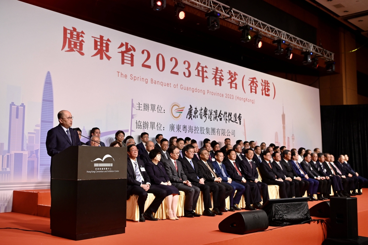 鄭雁雄代表中聯辦對活動舉辦表示熱烈祝賀。他說,在中國式現代化全面展開之際,習近平總書記、黨中央深情寄望香港更好融入國家發展大局,為實現中華民族偉大復興更好發揮作用。港粵兩地的同向互補關係蘊含著巨大的貿易、金融、能源、人才、人力、科技、信息、服務合作空間和需求,商機澎湃。香港與廣東同處一個灣區,同屬嶺南文化,同講廣東話、愛吃廣東菜、共唱粵語歌,交流交往交融的條件得天獨厚,必定“金風玉露一相逢、便勝卻人間無數”。香港如今從由亂到治走向由治及興,更清醒認識到,香港治則利來、亂則利往,港粵合則利來、分則利往,更能當好大灣區超級聯繫人,更好參與大灣區建設。 鄭雁雄指出,中聯辦也要當好超級牽線人、超級勤務員,做好聯絡服務工作,全面準確貫徹“一國兩制”方針,全面準確落實中央意圖,全面準確實施粵港澳大灣區發展規劃綱要,齊心協力推進港粵交流合作,大力促進大灣區城市政策溝通、要素流通、設施聯通、民心相通,共同打造“風光無限”的大灣區壯麗圖景。 國務院港澳事務辦公室副主任楊萬明,中央政府駐港聯絡辦副主任尹宗華,駐香港國家安全公署副署長孫青野,外交部駐香港特派員公署署理特派員楊義瑞,特區政府政務司司長陳國基、財政司司長陳茂波、律政司司長林定國,廣東省領導張虎、張新、鄧海光等參加活動。特區政府主要官員、中央駐港機構負責人、廣東省領導以及香港社會各界代表約500人參加。(完) 【編輯:陳卓儀】
