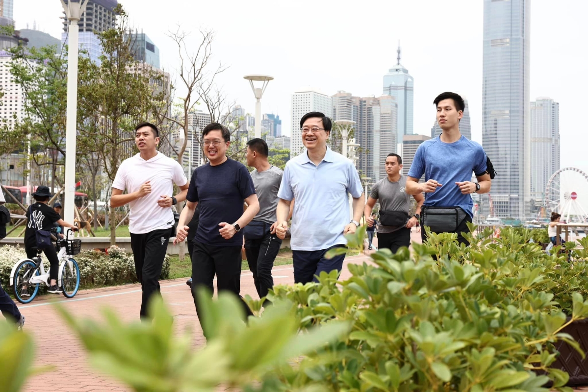 香港新聞網4月7日電 今日(4月7日)是香港復活節假期首日,特首李家超在社交平台發文祝市民節日快樂,並分享自己與幾位同事沿灣仔海濱長廊慢跑的感受,稱“快樂,真的可以來得很簡單。”