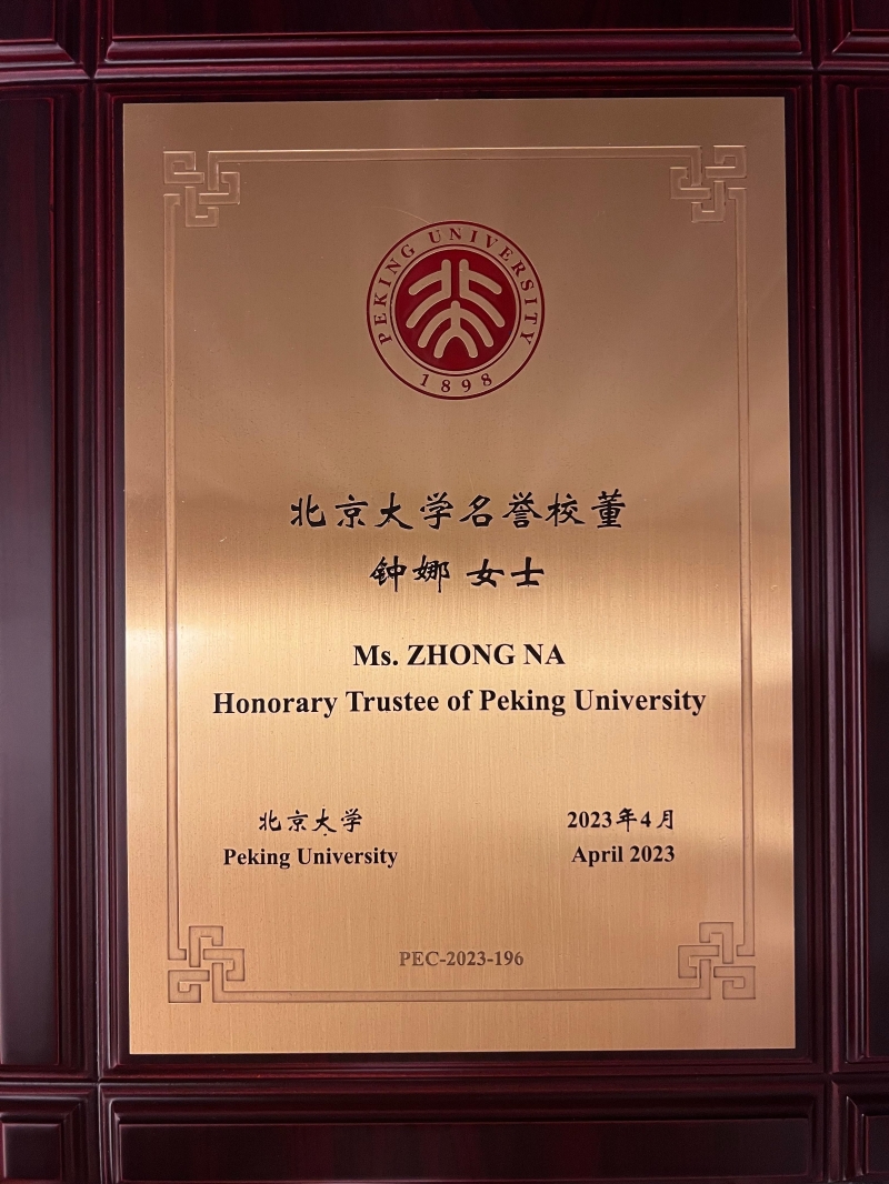 (鍾娜獲頒北大名譽校董銅牌。圖源:大公文匯全媒體) 鍾娜還提到,香港圓中國際有限公司創立於1998年,是香港圓中集團旗下核心投資平台,公司秉承金融實業雙輪驅動、相融共生的經營理念,始終堅持不忘初心、愛國愛港,始終堅持積極推動經濟發展與切實履行企業社會責任並重,始終堅持積極推動教育產業與國家核心產業相結合的理念。未來,圓中國際將繼續背靠祖國、深耕內地、聯通世界,為社會主義現代化強國建設作出新的更大貢獻。